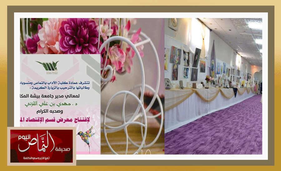 افتتح مدير جامعة بيشة الدكتور مهدي القرني المعرض الختامي لأعمال طالبات قسم الاقتصاد المنزلي و المقام بكلية العلوم و الاداب بالنماص بعنوان “ بأيدينا نصنع الابداع ”. اشتمل المعرض على أعمال الطالبات في كل من الفروع التالية:  التغذية, الاعمال الفنية, الأمومة و الطفولة, المفروشات و الملابس, ادارة المنزل . كما تجولت سعادة عميدة الكلية م. فاطمه عبدالله الشهري وأعضاء هيئة التدريس في جنبات المعرض الذي حوى الكثير من المهارات الفنية واليدوية من انتاج الطالبات تم إخراجها بطريقة إبداعية. وقد لاقى المعرض استحسان الجميع الذي نظم بطريقة فنية وجذابة للزوار تخلل ذلك حوار هادف مع المشاركات لإبراز مواهبهن وتشجيعهن على التقدم والاستمرار .