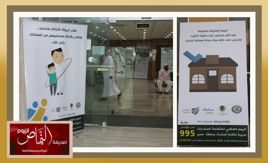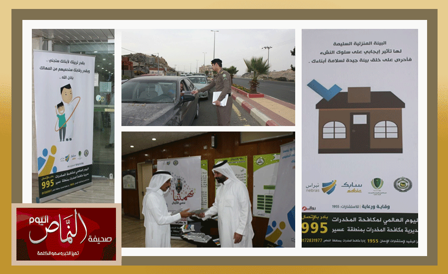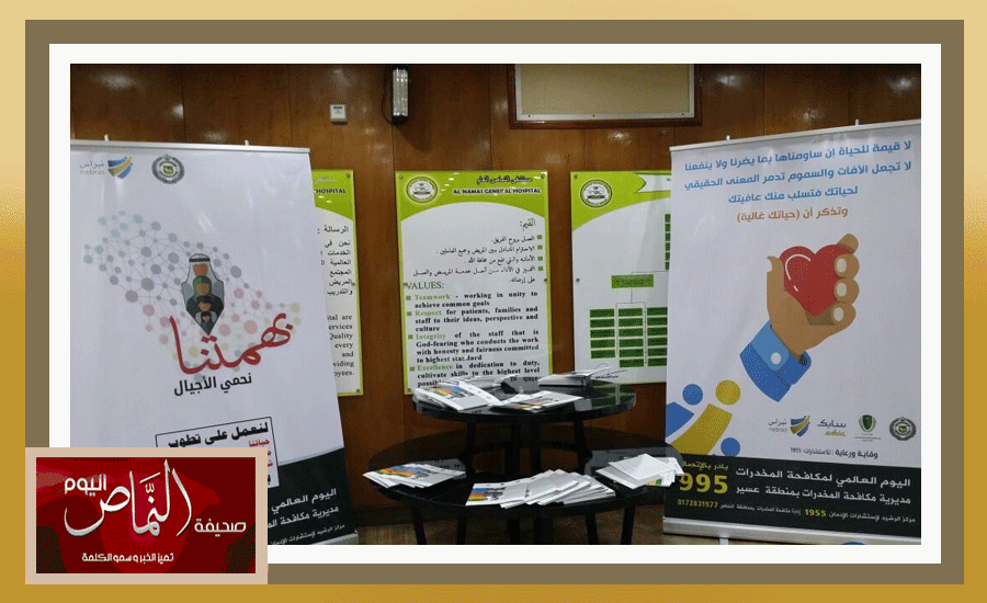 انطلقت فعاليات اليوم العالمي لمكافحة المخدرات مساء يوم الأحد الموافق ٢١-٩-١٤٣٧هـ بمحافظة النماص ،حيث قامت إدارة مكافحة المخدرات بمحافظة النماص بالاحتفال باليوم العالمي لمكافحة المخدرات والذي يصادف السادس والعشرون من يونيو من كل عام . شملت الاحتفالية توزيع عدد من المنشورات و المطويات و الكتيبات على المواطنين والمقيمين،التي تتحدث عن اضرار المخدرات من الكبتاجون و الحشيش و الهروين و العقاقير الطبية و شرح مفصل للمحافظة على الأسرة لتكون آمنه من هذا الوباء. تم ذلك تحت متابعة من مدير مكافحة المخدرات بمحافظة النماص، الذي قال : نسعى من خلال عملنا في هذا المجال إلى تثقيف المواطنين والمقيمين، بخطر هذه الآفة التي انتشرت في المجتمعات وحطمت أبناءها من مختلف الفئات العمرية، كما نكثّف المزيد من برامج التوعية والإرشاد واستهداف فئة الشباب وتحصينهم من آفة المخدرات ، في ظل الدعم اللامحدود الذي نحظى به من قيادتنا الرشيدة . وأضاف أن الفعاليات والبرامج التوعوية تهدف إلى بث روح الوعي بمخاطر المخدرات، التي أصبحت هاجساً يؤرق كثيراً من المجتمعات ويقضي على كثير من القِيَم الفاضلة والعقول البنّاءة كونها تمثّل شبحاً يهدد الكثير من الأسر بالتفكك والضياع.