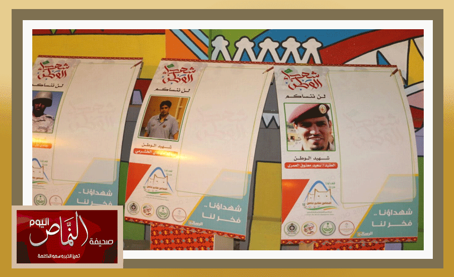 برعاية كريمة من محافظ محافظة النماص الأستاذ عبدالله بن عايض العجيري ؛ تم تدشين معرض ” شهداء الوطن ” تحت شِعار ” شهداؤنا .. فخرٌ لنا ” ، وبتنظيم وإشراف لجنة التنمية السياحية بالمحافظة بقيادة الأستاذ سعد بن محمد آل عثمان ، وقد احتوى المعرض على صور وأسماء ” شهداء الواجب ” الذين قضوا نحبهم وقدموا أروع الأمثلة في الذود عن حياض الدِين والوطن . في تمام الساعة التاسعة مساء استعرض راعي الحفل والضيوف الكرام أركان المعرض وكانت على النحو التالي : ركن صور وأسماء شهداء الواجب – ركن معرض الرسم الحـر – ركن الفنان صالح العمري – ركن بطولة سلمان الحزم الرياضية – ركن مستشفى النماص العـام – ركن متحف ابن صوفان ، ثم توجه الجميع للمسرح لتبدأ فقرات الحفل بتلاوة عطرة من كتاب الله تعالى ، ثم عرض مرئي بعنوان : ” فخر التضحيات ، لمعنى الحياة ” من إنتاج لجنة التنمية السياحية ، عقب ذلك توالت الفقرات الخطابية والشعرية ، والأهازيج الإنشادية حتى انتهاء الحفل . تجدر الإشارة إلى قيام عدد من الأعيان بالتبرع لأسر الشهداء حيث قدم الشيخ عبدالله بن عثمان العسبلي 100 ألف ريال من أبناء النماص، وقدم الشيخ محمد بن قربع مبلغ 20 ألف ريال، والشيخ حسن بن حمود 10 الآف ريال. وأشار محافظ النماص عبدالله بن عايض العجيري إلى أن هذه البرامج والفعاليات تأتي ضمن برامج وفعاليات صيف النماص، حيث أظهر الحضور صورة رائعة عن انتمائهم وولائهم للقيادة والوطن.