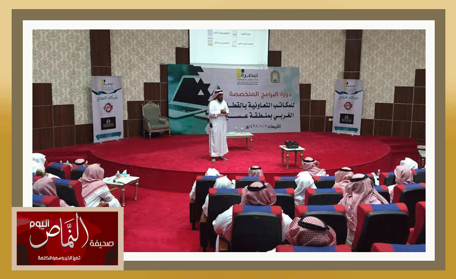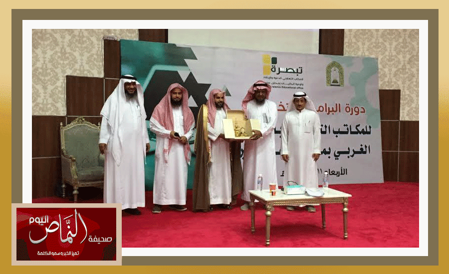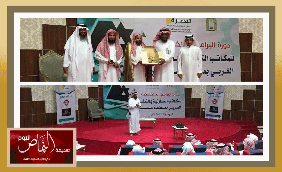 نظّم فرع وزارة الشؤون الإسلامية والدعوة والإرشاد بمنطقة عسير، ممثلاً في المكتب التعاوني للدعوة والإرشاد وتوعية الجاليات بمحايل عسير “تبصرة” بتوجيه من نائب الوزير لشؤون المساجد د. توفيق السديري، دورة تدريبية لمدراء المكاتب التعاونية بالمركز الحضاري بمحايل تهدف إلى تفعيل الدور الدعوي للمكاتب التعاونية والإرشاد وتوعية الجاليات، وبخاصة في البرامج الدعوية المتخصصة وذلك بمشاركة ثمانية عشر مكتب تعاوني وهم: (النماص – تنومة-بلقرن – بللسمر – البشائر – بللحمر – رجال ألمع – بحر أبوسكينة – البرك – قنا – بارق – المجاردة – ثلوث المنظر -الحريضة – القحمة – ثربان – جمعة ربيعة). حيث رحّب مدير المكتب التعاوني بمحايل الشيخ ظافر بن محمد الشهري بالمدرب صالح بن خليفة الكليب، مدير وحدة البرامج المتخصصة للمكاتب التعاونية بالوزارة، وبالحضور من فرع الوزارة بالمنطقة وجميع المكاتب التعاونية، كما قدّم شكره وتقديره للحضور على اهتمامهم وحرصهم. وقد شملت الدورة كثيراً من المحاور والبرامج التي تعمل على تعزيز قدرة المتدرب في المجال الدعوي في وسط متفاعل من الحضور. من جهته، صرّح مدير إدارة الدعوة والإرشاد بفرع الشؤون الإسلامية بعسير الشيخ يحيى بن إبراهيم أبو شريفة بأنه تم بحمد الله تنفيذ الدورة التدريبية والموجهة للمكاتب التعاونية بالمنطقة بفاعلية عالية. وفي الختام شكر الشيخ بندر الغنمي مدير إدارة المساجد والدعوة والارشاد بمحايل المدرب صالح الكليب وجميع الحضور على حرصهم وحضورهم هذا اللقاء وقدم الغنمي هدية تذكارية للكليب في نهاية هذا اللقاء المبارك. ثم تناول الجميع في نهاية اللقاء طعام العشاء. كما يتقدم مدير المكتب التعاوني بمحايل بالشكر الجزيل لرئيس بلدية محايل أ. حمد آل درهم على تهيئته وإتاحته للمركز الحضاري الذي كان مقراً للقاء. ونسأل الله عز وجل أن يديم علينا الأمن والإيمان وأن يحفظ بلادنا من كل سوء وأن ينصر جنودنا المرابطين على الحدود إنه سميع مجيب الدعاء.