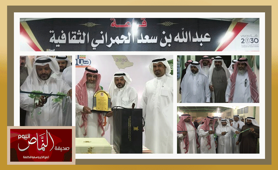 بحضور سعادة مدير التعليم بالنماص الأستاذ عبدالله بن عبدالرحمن آل قاسم  تم تكريم قائد مدرسة عبدالله بن عمر السابق الاستاذ/ عبدالله الحمراني وتم تسمية القاعة الثقافية في المدرسة باسمه تكريما وعرفانا بجهوده في هذه المدرسة  وتميز المدرسة في ظل قيادته لعدة سنوات مضت  ، كما حضر التكريم رئيس الإشراف التربوي الأستاذ علي بن صالح العمري ورئيس الإدارة المدرسة سعيد رامس  وكل من رجلي الأعمال  علي بن حسن وسلطان  بن ناصر  والأستاذ أحمد بن مرعي وقد استقبل الجميع  قائد المدرسة الأستاذ عبدالله مرعي القرني ووكيل المدرسة الأستاذ محمد رافع العمري  وجميع منسوبي المدرسة وقد تم تدشين الحفل بافتتاح القاعة التي أطلق عليها قاعة الاستاذ عبدالله الحمراني الثقافية  ثم سلم مدير التعليم عددا من الهدايا للضيف ثم توجه  الجميع  إلى مأدبة العشاء التي أعدت  لهذه المناسبة كما تم تكريم الاستاذ مسعد بن ظافر الشمراني الذي انتقل هذا العام الى محافظة بلقرن . وقد شارك  الشاعر مرضي بعدد من القصايد الترحيبية وقد ابدى المحتفى به شكره وتقديره لهذه اللفتة الأخوية من زملائه منسوبي المدرسة  وسال الله أن يحفظ لهذه الدولة أمنها واستقرارها في ظل قيادتنا الحكيمة.