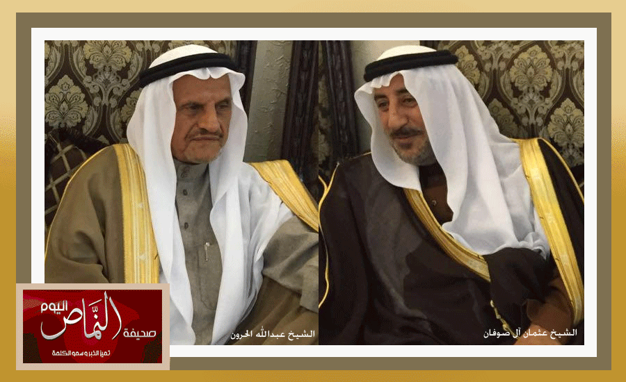 أقام كل من : ناصر بن عثمان بن صوفان و عبدالكريم بن عبدالله الحرون – مأدبة عشاء – ليلة البارحة السبت ٤ / ٣ / ١٤٣٨ هـ على شرف والديهما ” الشيخ عبدالله الحرون ” و ” الشيخ عثمان بن صوفان ” بمشاركة كل من : سعيد بن عثمان آل عثمان ، وعبدالعزيز بن مشبب آل غرمان ، ومحمد بن عبدالله آل جاري ، حضر المناسبة لفيف من قبيلة آل ابن غراء ، وكعب بني عمرو .