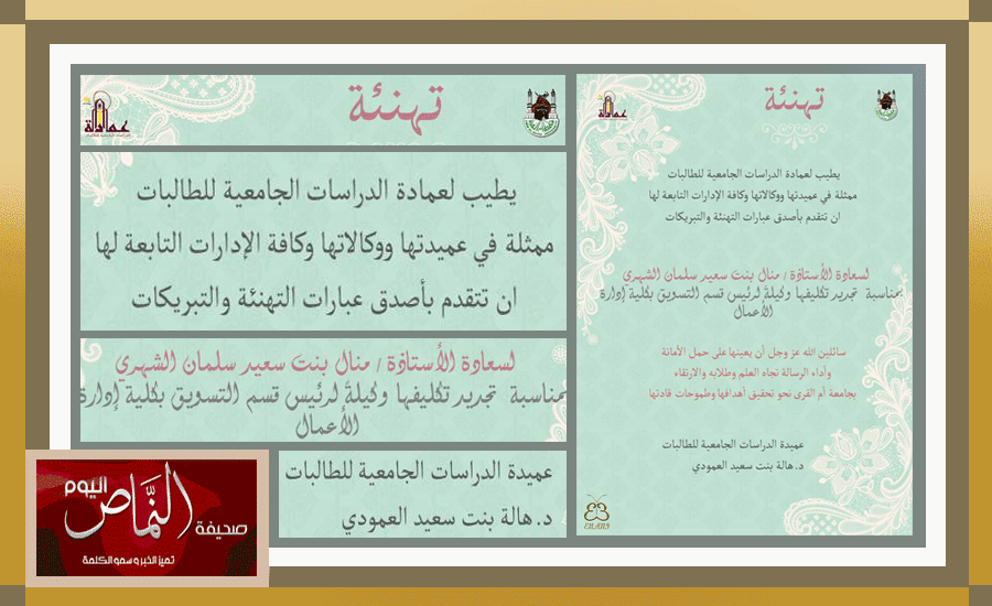 جامعة أم القرى تهنئ الأستاذة منال بنت سعيد الشهري