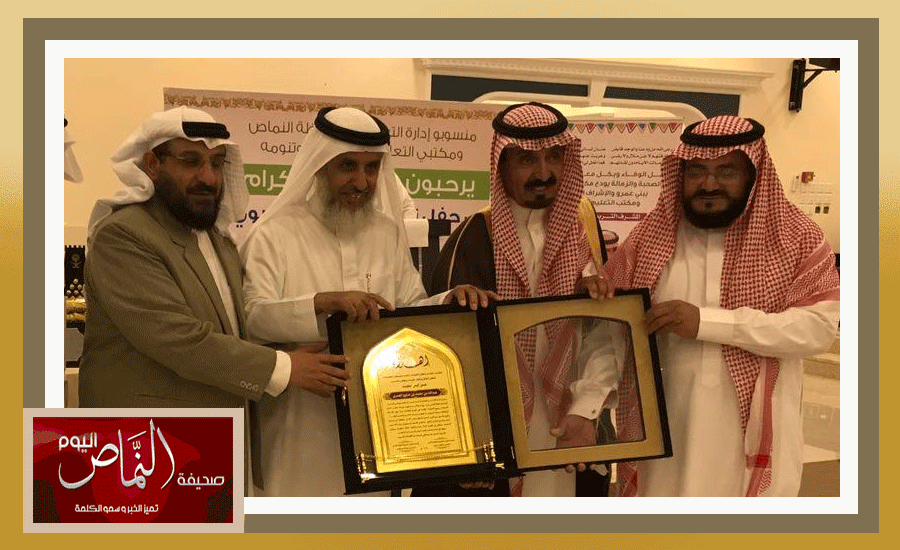 قام منسوبو تعليم النماص ممثلاً في إدارة الإشراف التربوي ومكتبي التعليم ببني عمرو وتنومة بتكريم المعلم الفاضل والمشرف التربوي المتميز الأستاذ / عبدالله بن محمد بن ضايح العمري بمناسبة تقاعده وذلك ليلة الثلاثاء الماضي الموافق 27/08/1438هـ في قاعة الفرسان بمقر نادي المعلمين بالحصباء حيث كان في استقبال المكرم بعد صلاة المغرب عدد من القيادات التربوية والمشرفين التربويين وقادة المدارس والمعلمين والأعيان والأهالي وفي مقدمتهم سعادة مدير التعليم الأستاذ / عبدالله بن عبدالرحمن آل قاسم ومساعداه للشؤون التعليمية والمدرسية حيث كان استقبالاً مهيباً يليق بمكانة المكرم عملياً واجتماعياً وبعد أن أخذ الجميع أماكنهم في القاعة بدأ الحفل الخطابي الذي قدم له الأستاذ / عبدالله عوض القرني واستهله بمقدمة استعرض فيها السيرة الدراسية والعملية للمكرم منذ دخوله الصف الأول الابتدائي إلى تخرجه من الجامعة ثم تعيينه معلماً لمادة العلوم حتى تكليفه مشرفاً لها كما تحدث عن مناقبه وصفاته الشخصية التي جعلته يستحوذ على رصيد كبير من حب الآخرين وتقديرهم بعد ذلك ألقى مدير مكتب التعليم ببني عمرو الأستاذ عايض بن عبدالله القرني كلمة تحدث فيها عن الجوانب المضيئة في حياة بن ضايح العملية كمعلم ثم كمشرف تربوي وما يتحلى به من صفات نبيلة وخلق حسن حتى أصبح قدوة يحتذى بها في الإخلاص والتفاني والعمل الجاد إضافة إلى التعامل الراقي والابتسامة المشرقة التي لا تفارق محياه ثم ألقى الأستاذ الشاعر / عبدالله بن علي الأكرمي قصيدة مدح فصيحة حازت على استحسان الحضور ثم ألقى مدير الإشراف التربوي الأستاذ / علي بن صالح العمري كلمة أشاد فيها بتميز المكرم في عمله الإشرافي وسعيه الدائم إلى معرفة الجديد والمفيد في تطوير أدواته وأساليبه من خلال حبه للاطلاع ونهمه بالقراءة وتبادل الخبرات والتجارب مع الآخرين، أعقب ذلك قصيدة نبطية للشاعر مرضي بن عبدالله العمري رددها الحضور وتفاعلوا معها . ثم جاءت لحظة التكريم والعرفان بالجميل حيث قام مدير التعليم ومدير الإشراف التربوي ومدير مكتب تعليم بني عمرو بتسليم الهدايا والدروع المميزة والثمينة والتي تدل على علو مكانة المكرم في نفوس وقلوب رؤسائه وزملائه وكل من تربطه به علاقة وقد تنوعت هذه الهدايا بين المشالح الملكية والسيوف والخناجر الفاخرة والعطور النفيسة والدروع الفخمة والمميزة والمبالغ المالية حيث قدم له أبناؤه البررة شيكاً بمبلغ مائة ألف ريال إضافة إلى عدد من الهدايا العينية . بعدها تحدث بن ضايح في كلمة معبرة ومؤثرة عن عميق شكره وامتنانه لكل من قام على هذا التكريم أو شارك فيه ولو بالحضور مثمناً لهم هذا الاحتفاء الكبير وتلك المشاعر الصادقة معرباً عن أمله في أن يدوم الود ويستمر التواصل . ثم اختتم الاحتفال بالعرضة الجنوبية التي شارك فيها الحضور والتقطت الصور التذكارية الجماعية والفردية لهذه اللحظات الخالدة مع المحتفى به داعين الله سبحانه وتعالى أن يوفقه في قادم أيامه ويكتب له مزيداً من النجاح والعيش الرغيد .