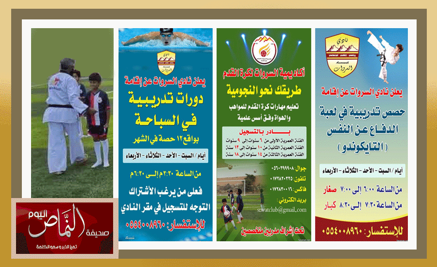 أطلق نادي السروات بمحافظة ‏النماص مطلع هذا الأسبوع عدة برامج اجتماعية ضمن خطة النادي للمشاركة في فعاليات التنمية السياحية لهذا العام والتي تشتمل على برامج رياضية وثقافية واجتماعية. حيث ذكر رئيس مجلس إدارة النادي الأستاذ عارف جمعان أن النادي ومن منطلق مسؤوليته في خدمة شباب محافظة النماص ‏قد أعد خطة متكاملة تتضمن مجموعة من البرامج التي تنطلق لأول مرة على ملعب النادي وتستهدف خدمة المجتمع بشكل عام ‏من أجل شغل أوقات فراغ الشباب بالجديد والمفيد ، حيث انطلقت أكاديمية السروات لكرة القدم لجميع الفئات السنية بقيادة مدربين متخصصين وكذلك فتح مدرسة ‏لتعليم رياضة الكاراتيه والدفاع عن النفس بإشراف مدرب متخصص كما بدأ النادي مطلع هذا الأسبوع في تسجيل الراغبين في تعلم مهارات السباحة لجميع الأعمار وذلك ب‏إشراف مدرب وطني مؤهل وبالتعاون مع مسبح الجواد بتنومة حيث يتولى النادي نقل المشاركين من وإلى النادي وفق جدول زمني دقيق، كما يستعد النادي لإطلاق دوري للسداسيات ينطلق منتصف شهر شوال بإذن الله .