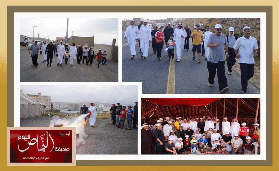 ضمن فعاليات ملتقى آل جميل السنوي الخامس، والذي يعد أحد برامج التنمية السياحية بمحافظة النماص، أقيمت فعالية “مشيك صحتك “، وذلك بإشراف الدكتور، صالح الأنصاري المتخصص في تعزيز الصحة وأحد رواد المشي في المملكة العربية السعودية وبرعاية رئيس مركز السرح الأستاذ، عبدالله بن محيا ،حيث بدأت الانطلاقة بعد صلاة العصر من أمام مقابل جامع الملك فهد بالسرح، وكان السير على مسافة 4 كلم ذهاباً وعودة شارك فيه رئيس مركز السرح وعدد من أهالي قرية آل جميل وكذلك أهالي مركز السرح . وبعد العودة إلى المخيم المعد استمع الجميع لشرح مفصل عن طريقة الاستخدام الآمن لطفاية الحريق في المنزل أو العمل عن طريق اختصاصين من شركة الكهرباء بأبها .