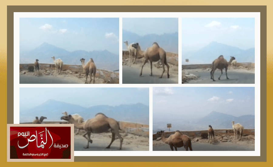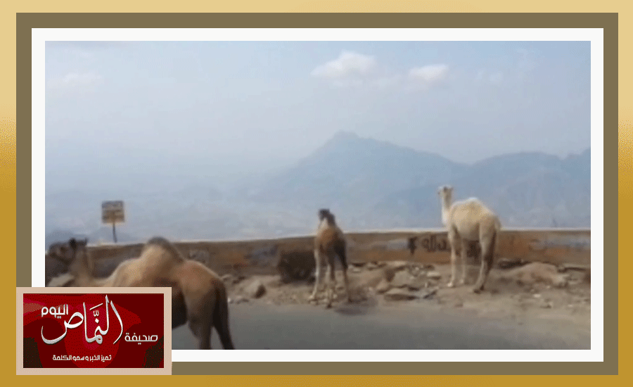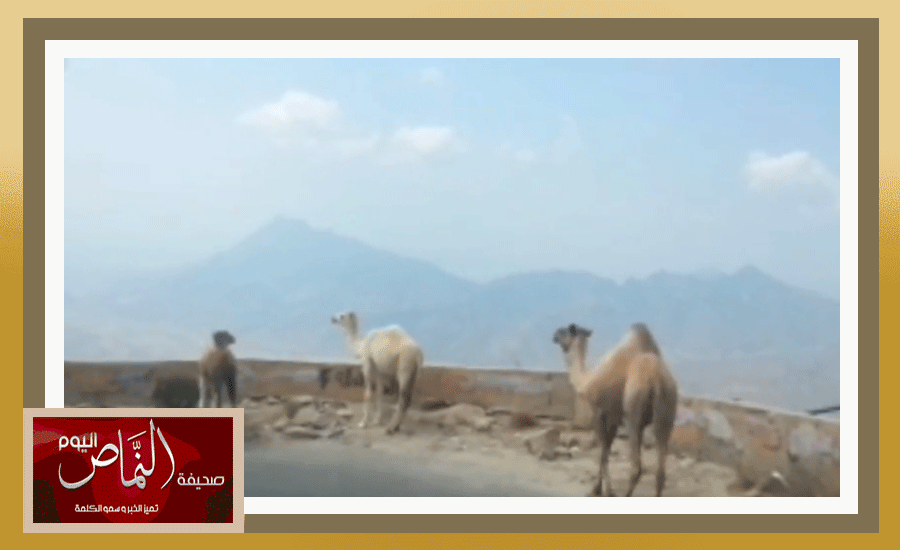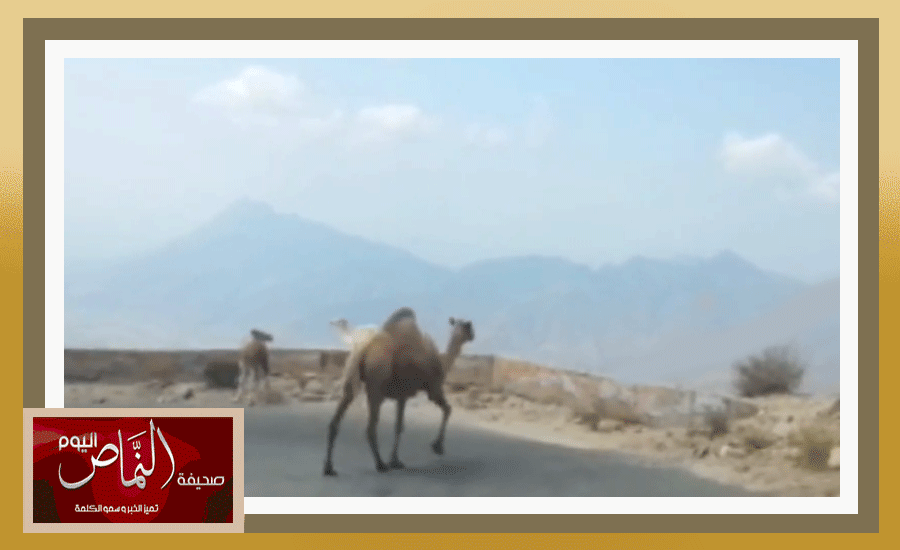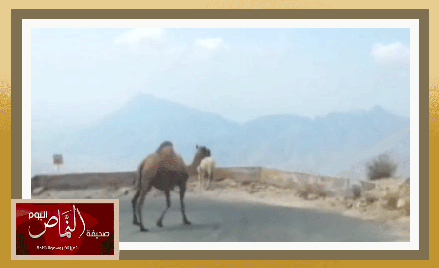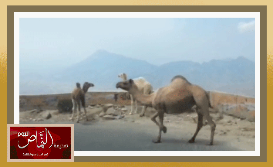 جمال سائبة تعيق المرور وتسبب الخطر في عقبة سنان