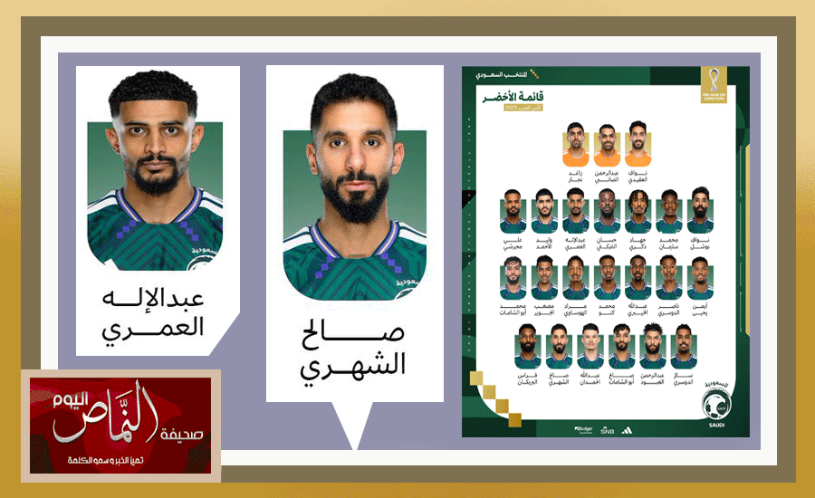 أعلن المدير الفني للمنتخب السعودي الأول لكرة القدم، إيرڤي رينارد، قائمة الأخضر المشاركة في بطولة كأس العرب FIFA قطر 2025™، والمقرر إقامتها خلال الفترة من الأول إلى الثامن عشر من شهر ديسمبر المقبل في دولة قطر. وتضم القائمة كل من صالح الشهري وعبدالاله العمري، يُذكر أن المنتخب السعودي يأتي في المجموعة الثانية ضمن بطولة كأس العرب FIFA قطر 2025م