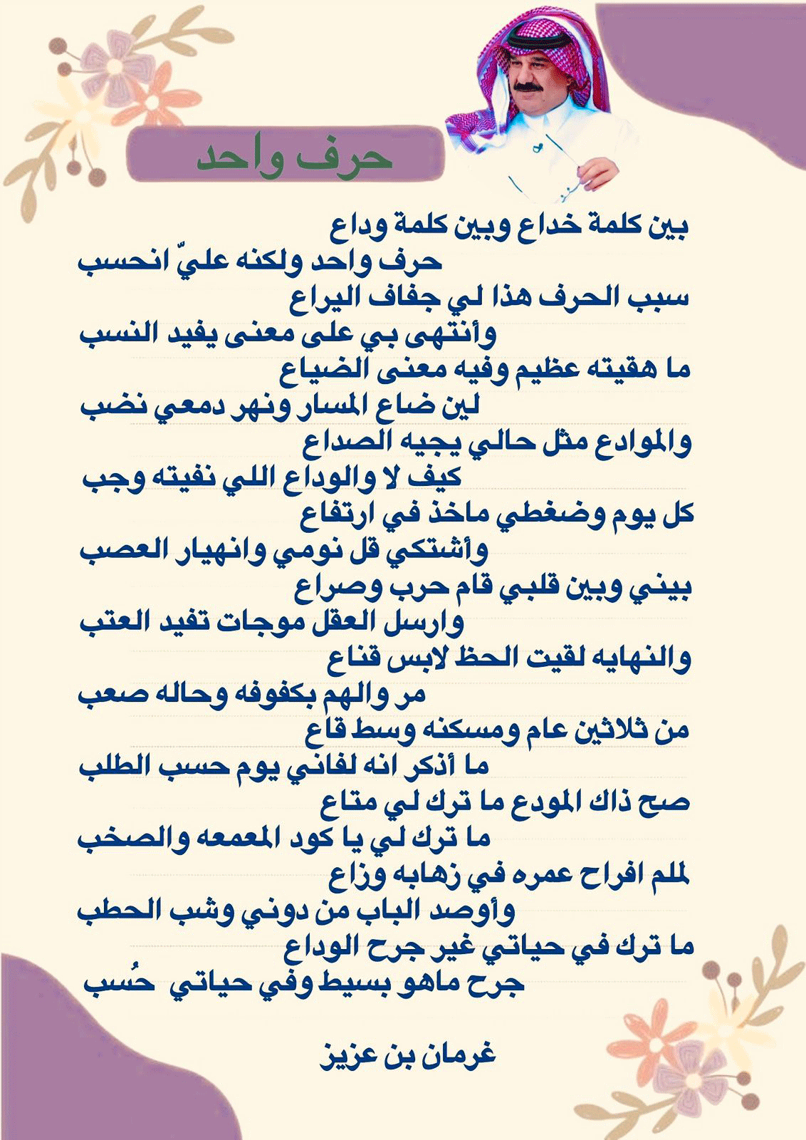 2 تعليقات على "حرف واحد – قصيدة بقلم الشاعر أ. غرمان بن عزيز العمري"