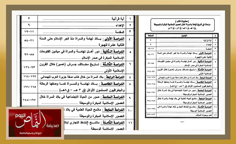 رابعا:- الخاتمة: يمكن القول إن هذا الكتاب ( دراسات في تاريخ تهامة والسراة …)،يمثل جهدًا علميًا واضحًا في سبيل إعادة بناء تاريخ البلدان السروية والتهامية الواقعة بين اليمن والحجاز ، وقد نجح المؤلف في جمع مادة واسعة، وربطها بالإطار الجغرافي، وفتح مجالات بحثية متعددة. وإذا كان العمل يحتاج إلى مزيد من التحليل والتركيب، فإن ذلك لا يقلل من قيمته، بل يؤكد أهميته بوصفه مرحلة أولى في مشروع علمي أكبر. وحبذا أن نرى إعداد كتاب تاريخي متصل وتفصيلي مع التوسيع في التحليل والمقارنة ، وكذلك تشجيع الباحثات والباحثين على إنجاز دراسات أكثر عمقا وتحليلا .