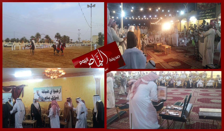 بدعوة من الشيخ مطارد بن عبدالرحمن ال مطارد العمري للشيخ طالع العمري أقيم مساء الخميس 25/8/1434هـ حفل في ضيافة الشيخ حمد ابن خشة اليامي وبدأ استقبال القبائل من الساعة الرابعة عصراً .. ثم بدأ الحفل الذي قدمة الأستاذ والإعلامي علي بن زينان بأيات من القرآن الكريم لأحد ابناء قبيلة ال مرة ثم بعد ذلك كلمة لرجال يام قدمها نيابة عنهم المحامي جبيع بن هادي سلوم ثم شلة للشبل سلطان ال مطلق ثم جاء الزامل الترحيبي من كلمات الشاعر حسين بن المحلكم ال مخلص بعد ذلك استمرت الحفل الخطابي بقصائد بدأها شنار يام الشاعر محمد الشرمان ثم قصيدة للشاعر عبدالله القشانين ثم شلة لأحد شباب الشرمان ثم قصيدة لأحد شعار ال فروان وقصيدة للشاعر فيصل بن قنه ثم اختتمها الشاعر حسين بن المحلكم بقصيدة شلة بدأت معها الصفوف باللعب وبمشاركة الضيوف بعد وجبة العشاء كلمة لقبيلة بن عمرو قدمها نيابة عنهم الشيخ طالع العمري بعدها استمر المنبر الخطابي بتبادل الهدايا التذكارية بين القبيلتين والتي قدمها كلاً من الشيخ مطارد ال مطارد والشيخ طالع العمري وجاء وقت القصيد للضيوف بأكثر من ست قصائد جميلة شملها الكثير من الشلات وكان للشاعر المعروف سعيد بن ذياب العمري الحضور الأجمل في جميع القصائد لما له من تاريخ وحضور جميل دائماً في الشعر في ختام الحفل أقبلت قبائل يام بزامل ترحيبي من كلمات الشاعر مانع بن يحيى ابو ساق بعدها بدأت قبيلة بني عمرو في ترديد زامل للإستئذان من اهل الحفل في مشهد جميل جميع القبيلتين في مساء رائع فكل الشكر للشيخ حمد ابن خشة وللشيخ مطارد ال مطارد ولجميع قبائل يام التي كانت مشاركة بالقصيد والترحيب والتنظيم الجميل. ..