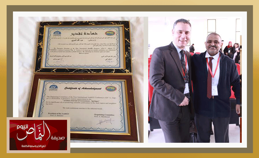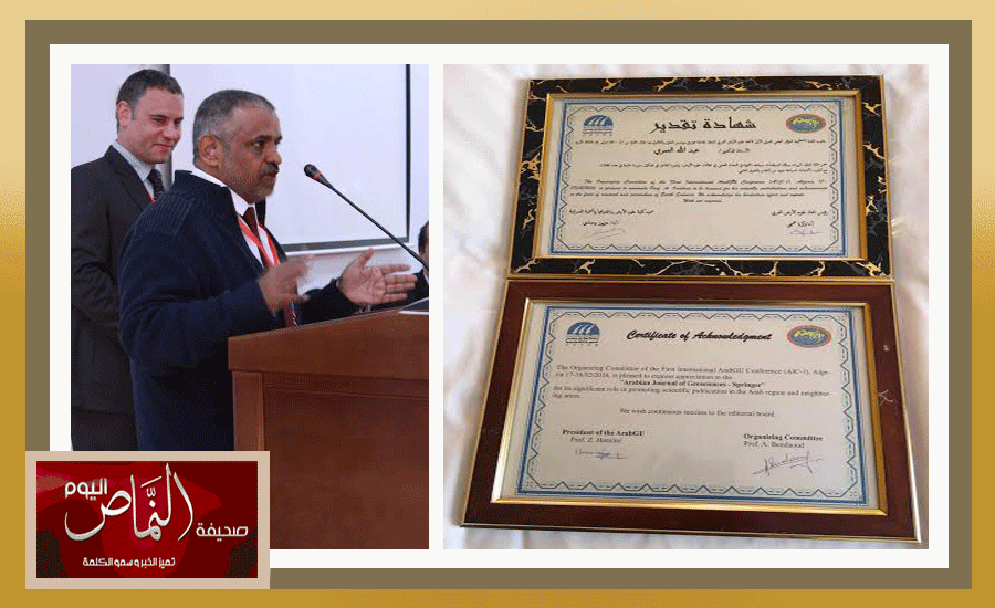 برعاية رئيس جامعة هواري بومدين بالجزائر تم بتاريخ ١٧ فبراير ٢٠١٦ م تكريم الأستاذ الدكتور عبدالله بن محمد العمري رئيس الجمعية السعودية لعلوم الأرض والذي يعمل بجامعة الملك سعود ( قسم الجيولوجيا – كلية العلوم ) ويشغل رئيس مجلس إدارة الجمعية السعودية لعلوم الأرض ، ورئيس تحرير المجلة العربية للعلوم الجيولوجية ، والمشرف على مركز الدراسات الزلزالية ورئيس قسم الجيولوجيا والجيوفيزياء ، وتمّ تكريم العمري لإسهاماته المتميزة في البحث العلمي ولدوره الفاعل في تشكيل منظومة علمية متكاملة ومجلة دولية متميزة في العلوم الجيولوجية Arabian journal Geosciences وهي المجلة الوحيدة في الوطن العربي التي لها معامل تأثير ( معامل انتشار ) Impact factor وتقوم بنشرها واحدة من كبريات دور النشر العالمية وهي Springer وتم تكريم المجلة لإبراز دورها الرائد في مجال النشر العلمي على المستويين الإقليمي والعالمي ، و حيث أثرى العمري المكتبة العلمية ببحوث ودراسات قيمة ، وشارك في أكثر من ٥٠ مؤتمراً دولياً بأوراق علمية و٣٥ ورشة عمل لدول شرق البحر الأبيض المتوسط بإشراف منظمة اليونسكو ، و٨ مؤتمرات في دول الخليج العربي ، وحصل العمري على عدد كبير من الشهادات التكريمية والدروع والشهادات التقديرية والجوائز من داخل وخارج المملكة . من مؤلفات البروفسور العمري : الزلازل ، زلزالية وحركية شبه الجزيرة العربية ، مخاطر الزلازل وسبل مجابهتها ، وموجات الميناء ( التسونامي ) ، والجاذبية الأرضية وتطبيقاتها ، والبراكين ووسائل تخفيف مخاطرها ، النطاقات الزلزالية في شبه الجزيرة العربية ، قاعدة البيانات الزلزالية لشبه الجزيرة العربية ، أسس البحث في الكوارث القدرية ، والكوارث الطبيعية.