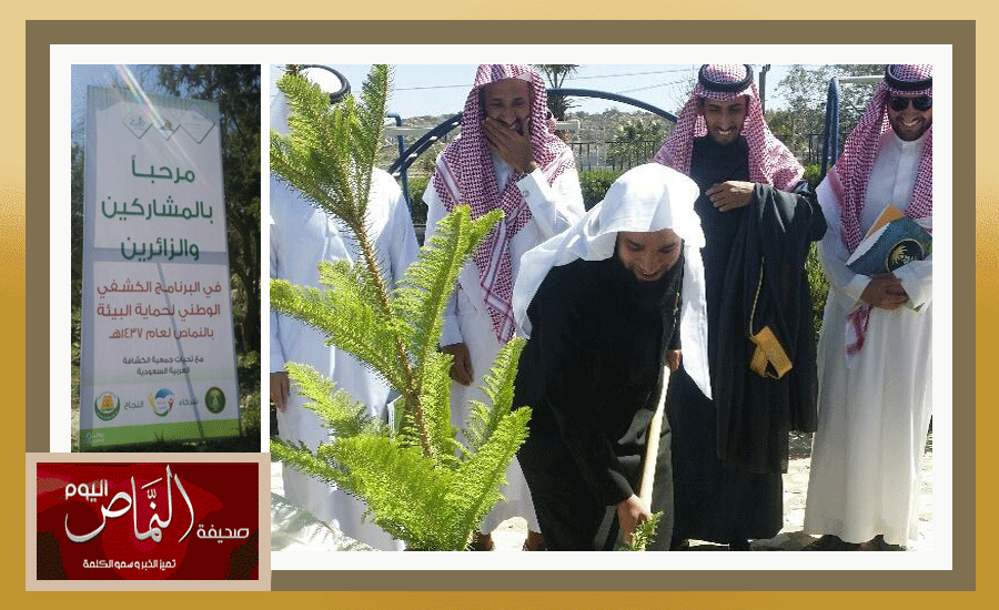 دشن رئيس المحكمة العامة بمحافظة النماص فضيلة الشيخ صالح بن ناعم العمري وبحضور مدير التعليم بمحافظة النماص بالنيابة الأستاذ محمد بن عاطف آل ذياب ومدير فرع الزراعة بالنماص الأستاذ عبدالرحيم البكري ومدراء الإدارات الحكومية بتدشين أسبوع الشجرة التاسع والثلاثون بمحافظة النماص وذلك على مسرح قاعة ظافر بن حبيب بإدارة تعليم النماص حيث بدأ الحفل بالسلام الملكي ثم القرأن الكريم ثم شاهد الحضور عرضا مرئيا عن الشجرة تلى ذلك كلمة مدير فرع الزراعة الأستاذ عبدالرحيم البكري ثم القى المشرف التربوي الأستاذ احمد الزيداني قصيدة شعرية بهذه المناسبة ثم كلمة لرئيس قسم النشاط الطلابي الأستاذ سعد بن محمد بن عثمان .بعدها شاهد الحضور لوحة مسرحية لطلاب مدرسة جعفر بن أبي طالب . بعد ذلك توجه فضيلته إلى الحديقة العامة بالنماص حيث قام بزراعة أول شتلة معلنا انطلاق فعاليات أسبوع الشجرة. بعد ذلك توجه الجميع لمنتزه الأمير سلطان بن سلمان حيث دشن فضيلته البرنامج الكشفي الوطني لحماية البيئة والذي تنظمه إدارة التعليم بالشراكة مع فرع وزارة الزراعة وبلدية محافظة النماص حيث تخلل التدشين بعض الفقرات الترحيبية والشعرية ومشاركة الطلاب بالعناية وزراعة الشتلات.